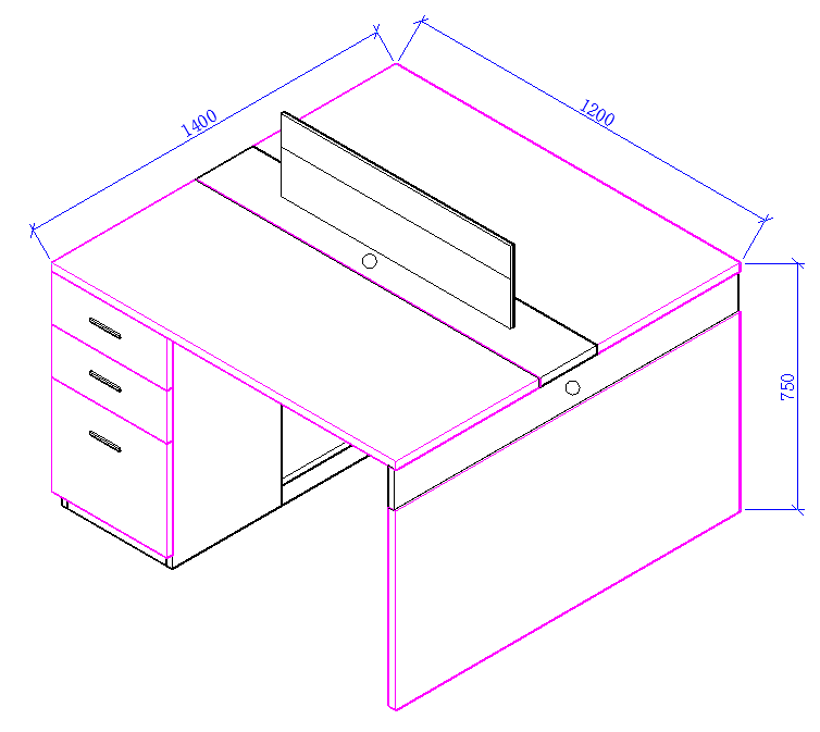 木制台、桌类  办公桌 1400*1200*750mm 颜色:西德枫木/高级灰台面斜边处理,配主机托架无键盘托架。